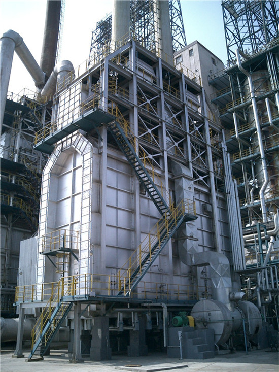 本爐設(shè)計(jì)時(shí),為了解決本裝置自產(chǎn)低壓瓦斯燃燒問題設(shè)計(jì)采用了HKL-80燃燒器,有效的解決了低壓瓦斯的預(yù)混和燃燒問題。為了強(qiáng)化對流室爐管的外膜傳熱系數(shù),減少爐管根數(shù)設(shè)計(jì)采用了R型鋸齒形翅片管。為了保證強(qiáng)制通風(fēng)的需要,本爐設(shè)計(jì)時(shí)采用了備用風(fēng)機(jī),工作風(fēng)機(jī)一旦出現(xiàn)問題備風(fēng)機(jī)及蝶閥(執(zhí)行機(jī)構(gòu))會自動投入運(yùn)行,所以要求備用風(fēng)機(jī)必須長年處于完好狀態(tài)。為了提高加熱爐的熱效率,減少爐體泄漏,全爐在結(jié)構(gòu)上進(jìn)行了全密封設(shè)計(jì)。為了提高加熱爐的熱效率、裝置能耗,在對流室頂部設(shè)置了兩臺蒸發(fā)液式傳熱管預(yù)熱器,它具有傳熱效率高、使用年限長的特點(diǎn)。為了提高加熱爐熱效率,減少預(yù)熱器低熱腐蝕的機(jī)會,使其加熱爐的排煙溫度常年保持在160℃左右,設(shè)計(jì)采用了本公司的專利技術(shù)調(diào)風(fēng)閥,如果加熱爐低負(fù)荷或冬季由于外界空氣溫度低,使預(yù)熱器的排煙溫度低于155℃時(shí),可適當(dāng)開啟風(fēng)道下部的調(diào)風(fēng)閥,使其排煙溫度常年保持在155℃以上,以確保預(yù)熱器不會造成低熱腐蝕。